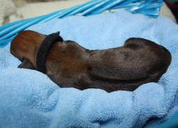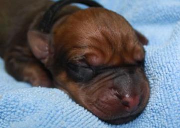 | NEWBORN EXAM Pet ridge, white tip on a few toes, no kinked tail, no cleft palate and no dermoid detected. |