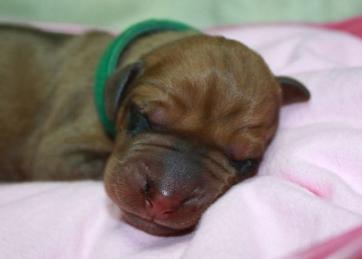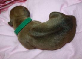 | NEWBORN EXAM Show ridge, white tip on a few toes, no kinked tail, no cleft palate and no dermoid detected. |