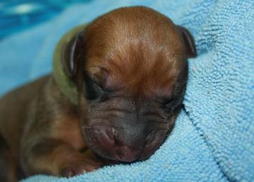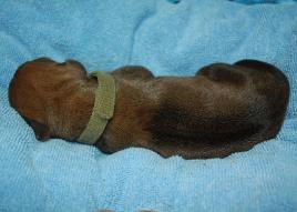 | NEWBORN EXAM Show ridge, white tip on a few toes, no kinked tail, no cleft palate and no dermoid detected. |