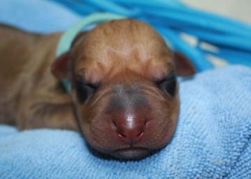 | NEWBORN EXAM Show ridge, white tip on a few toes, no kinked tail, no cleft palate and no dermoid detected. |