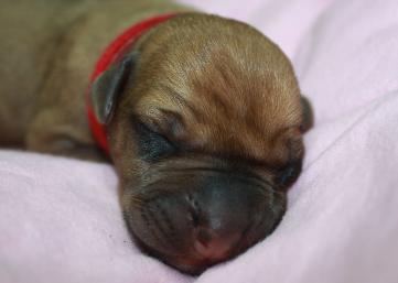 | NEWBORN EXAM Show ridge, white tip on a few toes, no kinked tail, no cleft palate and no dermoid detected. |