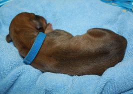 | NEWBORN EXAM Show ridge, white tip on a few toes, no kinked tail, no cleft palate and no dermoid detected. |