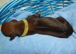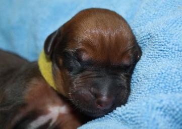 | NEWBORN EXAM Show ridge, white tip on a few toes, no kinked tail, no cleft palate and no dermoid detected. |